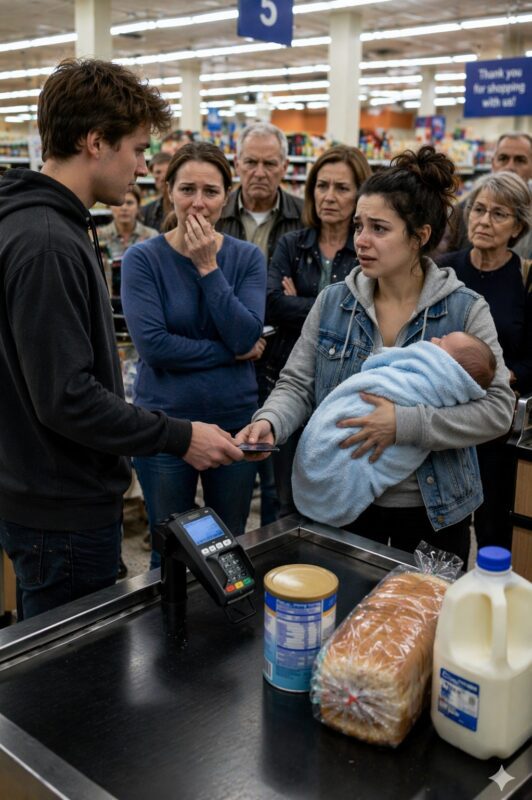 Mağazadaki sırada bekar bir anne çocuğu için aldığı ürünleri ödemeye çalışıyordu, ancak parası yetmedi