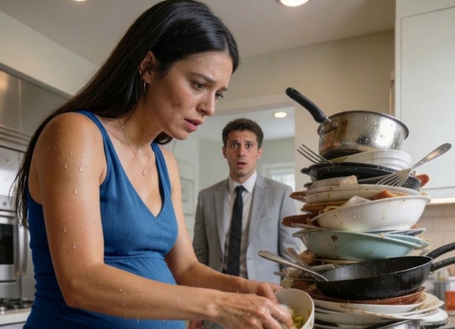 Sekiz aylık hamile karımı gece saat onda tek başına bulaşık yıkarken görünce